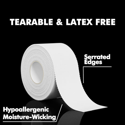 White Athletic Sports Tape 4-Pack, Strong Easy Tear NO Sticky Residue for Gymnastics Boxing Lacrosse Climbing Hockey Bat Injuries
