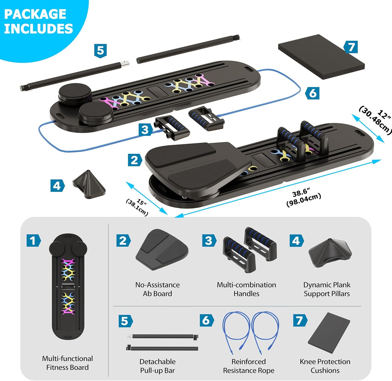 Upgrade your home workouts with one compact device. This board works as a Pilates reformer, ab roller, resistance band station, push-up platform, balance trainer, and plank tool—perfect for core, arm, leg, and back training.