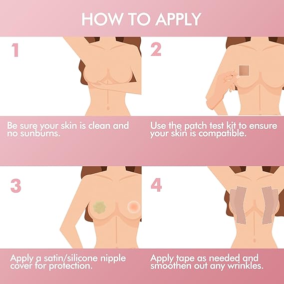 Complete Kit for Ultimate Comfort: This kit includes 1 roll of 2-inch wide breast lift tape, 5 pairs of silky satin breast petals, 1 pair of high-quality silicone nipple covers, and 3 Skin Sensitivity Test Kits for a smooth, irritation-free experience.
