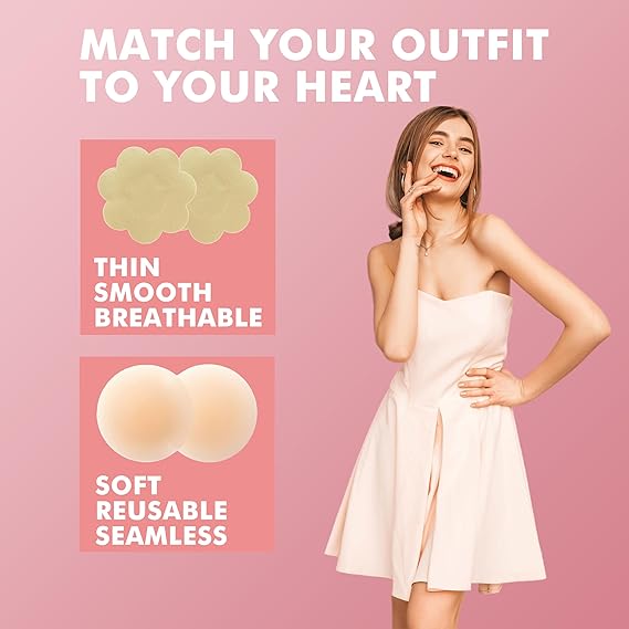 Premium Materials for Comfort & Durability: Made with 95% cotton and 5% spandex, the breast tape is lightweight, breathable, sweat-resistant, and tear-resistant, ensuring long-lasting wear without discomfort. The silicone nipple covers are soft, smooth, and skin-friendly, offering a gentle touch.