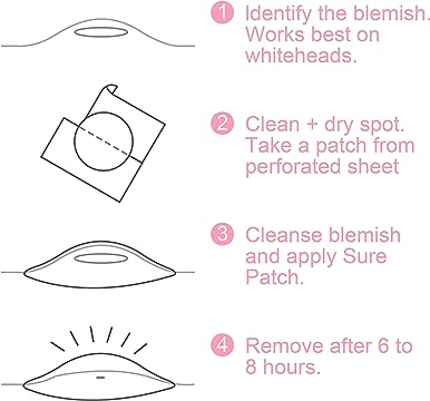 - User-Friendly Application: Follow these easy steps for usage: 1. Cleanse the area surrounding the blemish. 2. Choose a patch size slightly larger than the affected spot and affix it in place.
